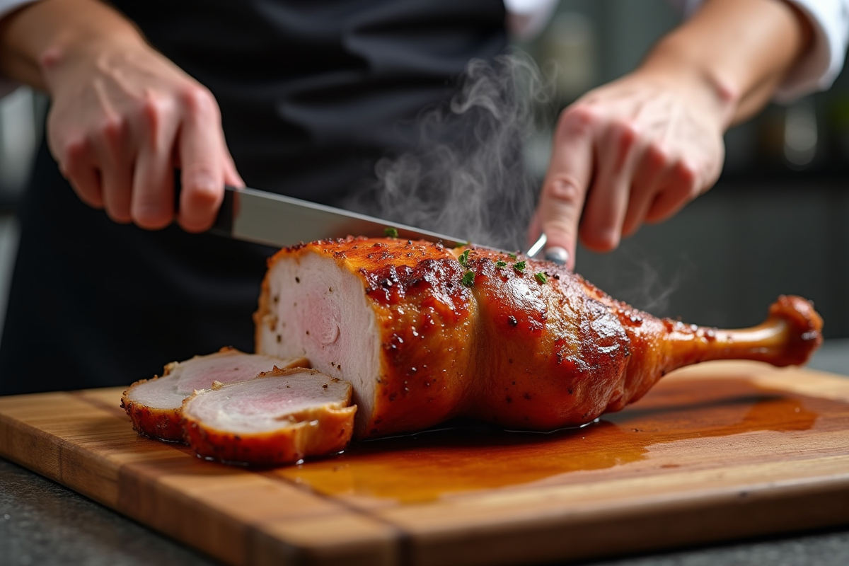 La cuisson en deux temps est une autre technique prisée. Commencez par cuire les cuisses à 140°C pendant deux heures. Montez la température à 200°C pour une quinzaine de minutes afin de rendre la peau croustillante. Utilisez un thermomètre à viande pour vérifier que la température interne atteint 85°C.